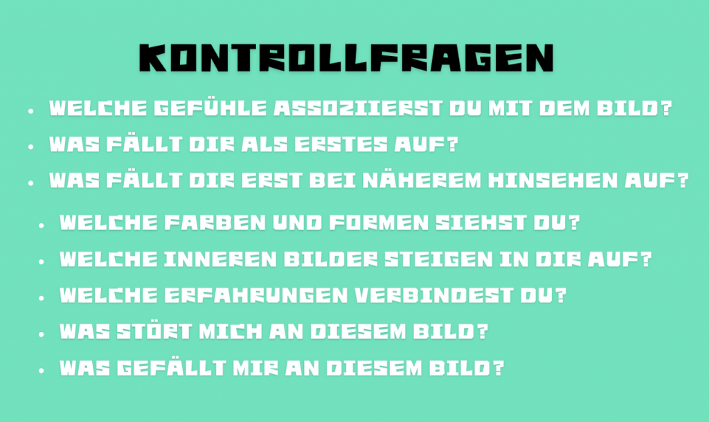 Die Karte mit den Kontrollfragen dient zur Orientierung und kann jederzeit hinzugezogen werden.